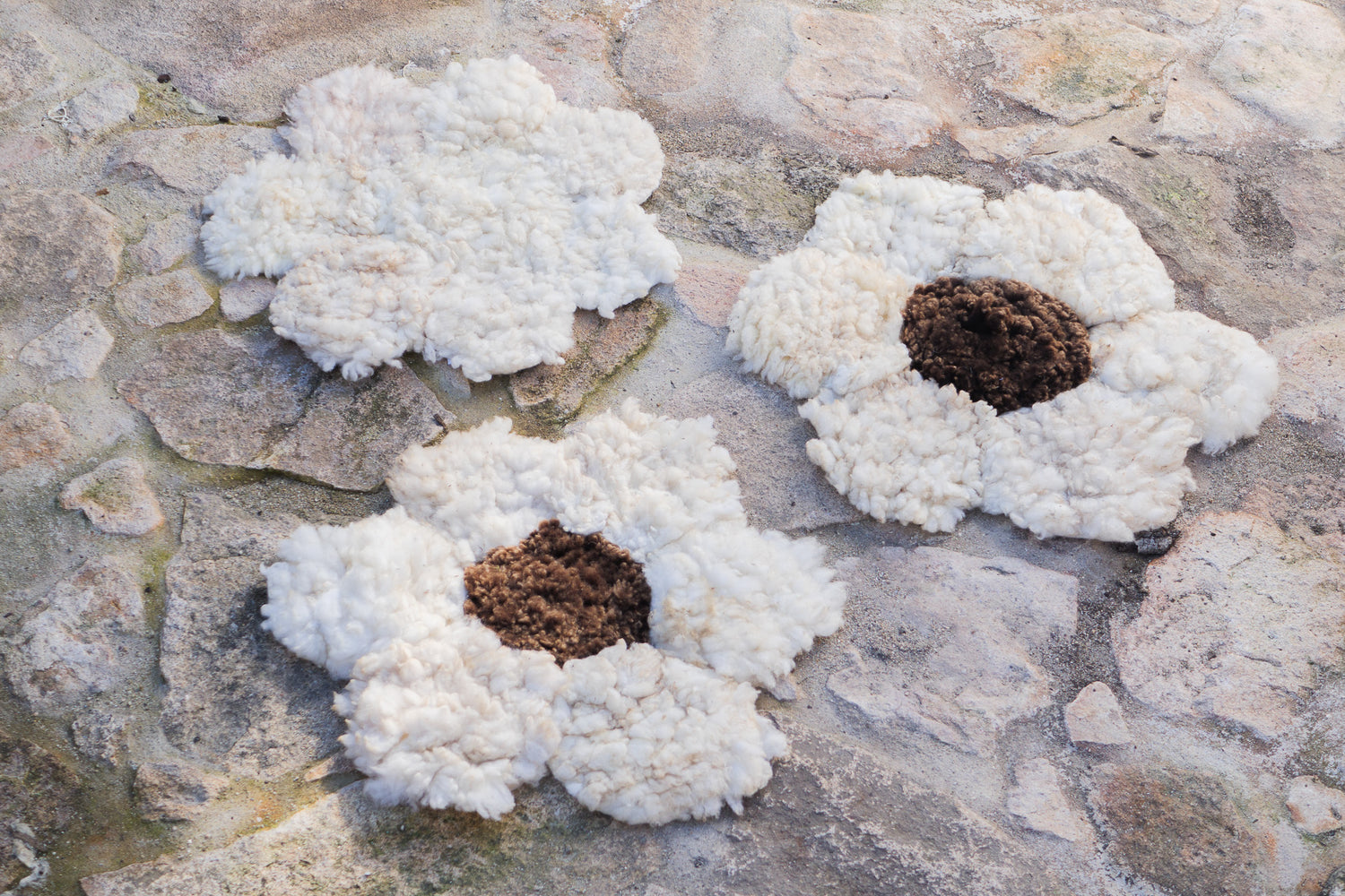 Estes tapetes macios e feltrados em forma de flores, feitos à mão...