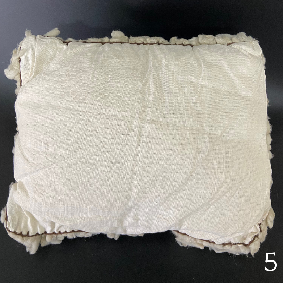 A parte da frente é feita de mechas de lã de ovelha feltradas sobre um forro de lã compacta. A parte de trás é feita de feltro de lã simples. A parte da frente e a de trás da almofada são costuradas à mão com um fio grosso de algodão castanho. As almofadas são preenchidas com pequenas esferas de lã.